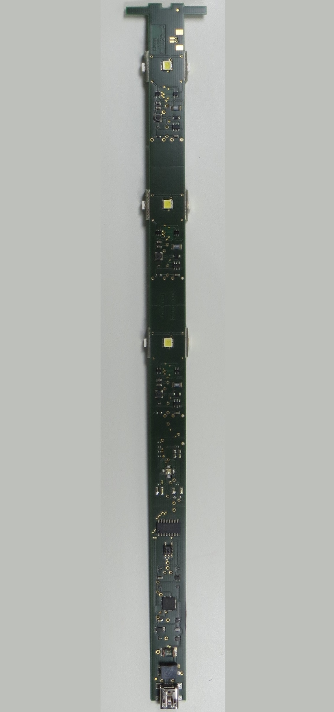 Im Fuß des Gerätes steckt eine Leiterplatte mit Interface und Mikrocontroller.
